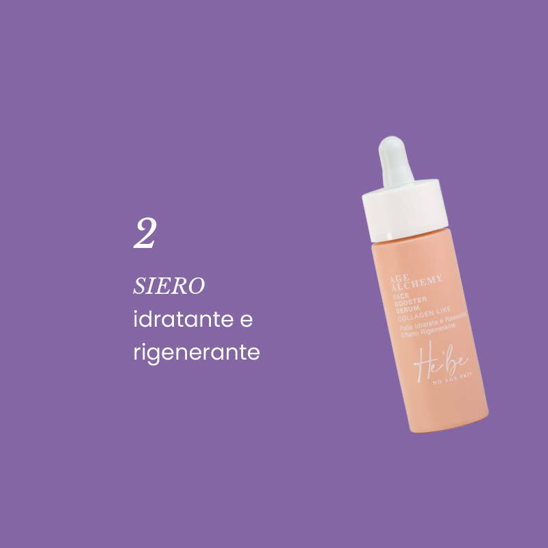 AGE ALCHEMY (30 ml / 1.01 FL. OZ.): un siero che rigenera e reidrata, un potente booster che grazie alle proprietà del collagene vegetale e dell’acido ialuronico riporta elasticità e idratazione limitando la TEWL (perdita trans epidermica naturale di acqua).